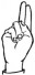 На ћирилици написано БУДИМИР КОЗНИЧАНИН састоји се из 17 слова [?]. Исписано ћириличном једноручном азбуком за глувонеме: